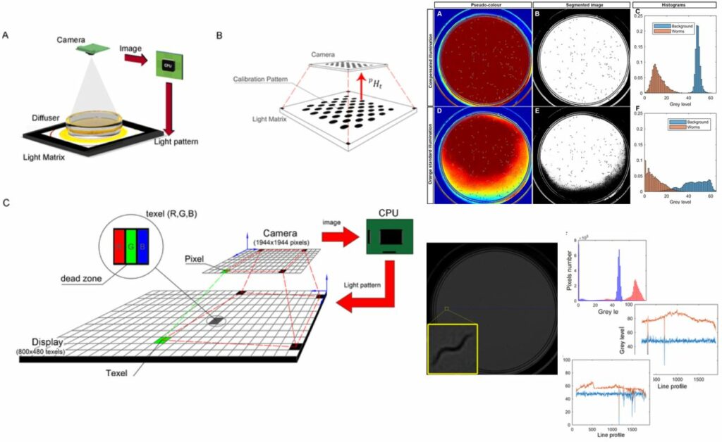 An active lighting technique has been designed, implemented and evaluated to improve segmentation results and control the light stimuli received by the nematodes [2].