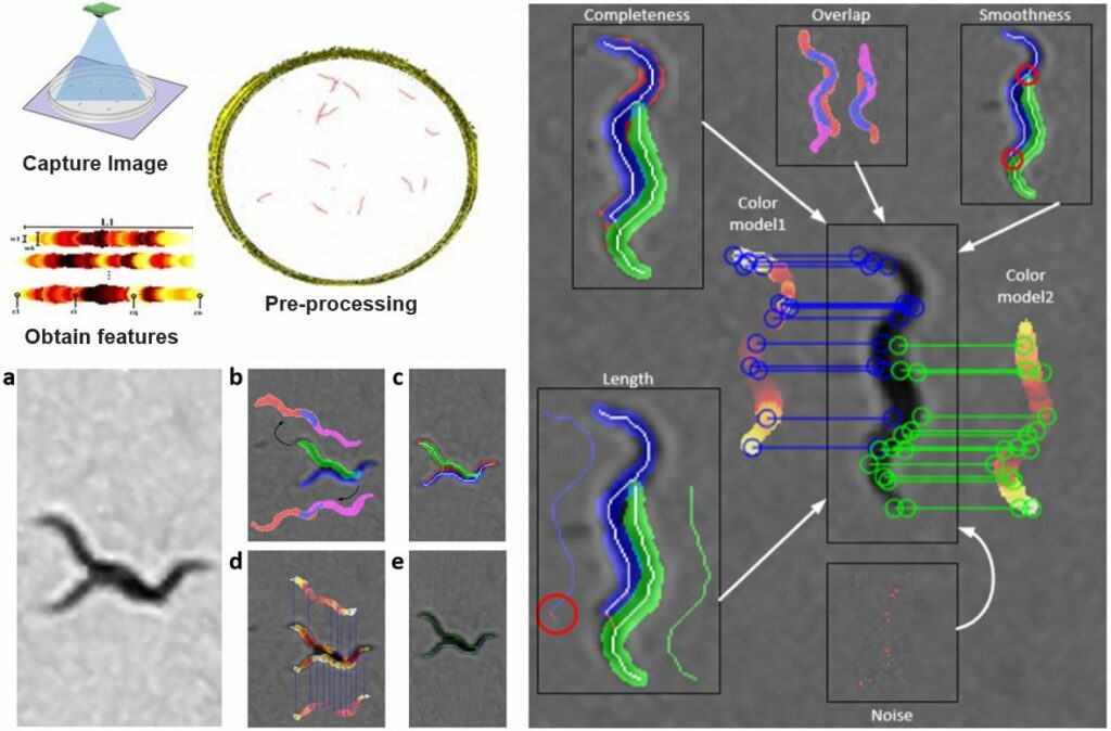 Advanced algorithms for posture tracking and re-identification of C. elegans from image sequences captured by the active systems were designed, developed and evaluated [5, 6].